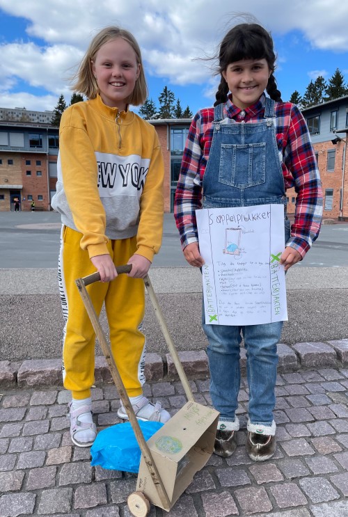 Temaet for konkurransen var miljøvennlig teknologi og oppdraget var å lage en miljøvennlig oppfinnelse som kan hjelpe oss å løse et mijøproblem. Vi lagde en søppelplukker fordi da slipper vi å bøye oss ned for å plukke søppel, og vi trenger ikke å ta på søppel. Det er bra med tanke på korona og fordi det er litt ekkelt å ta på andre sitt søppel.